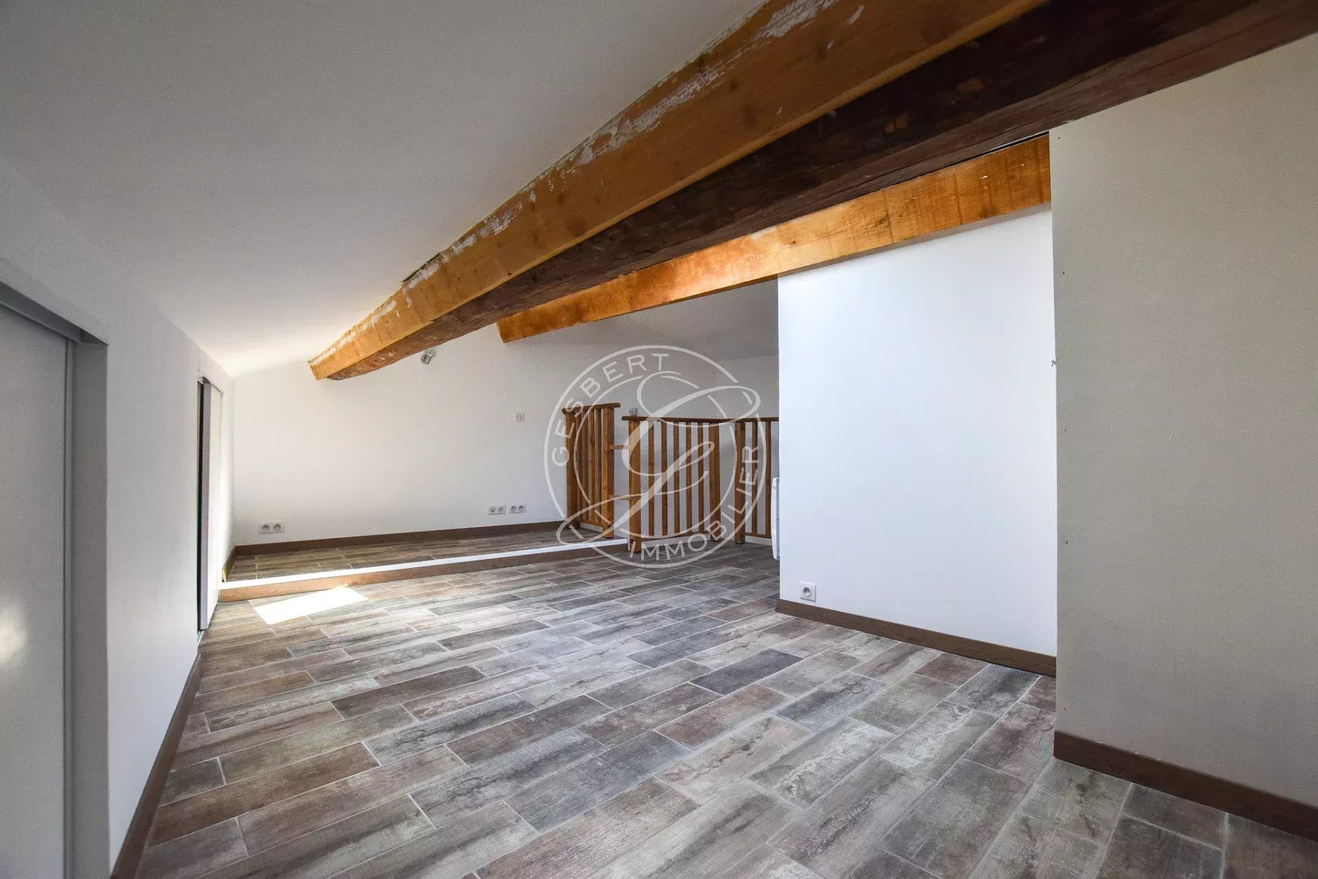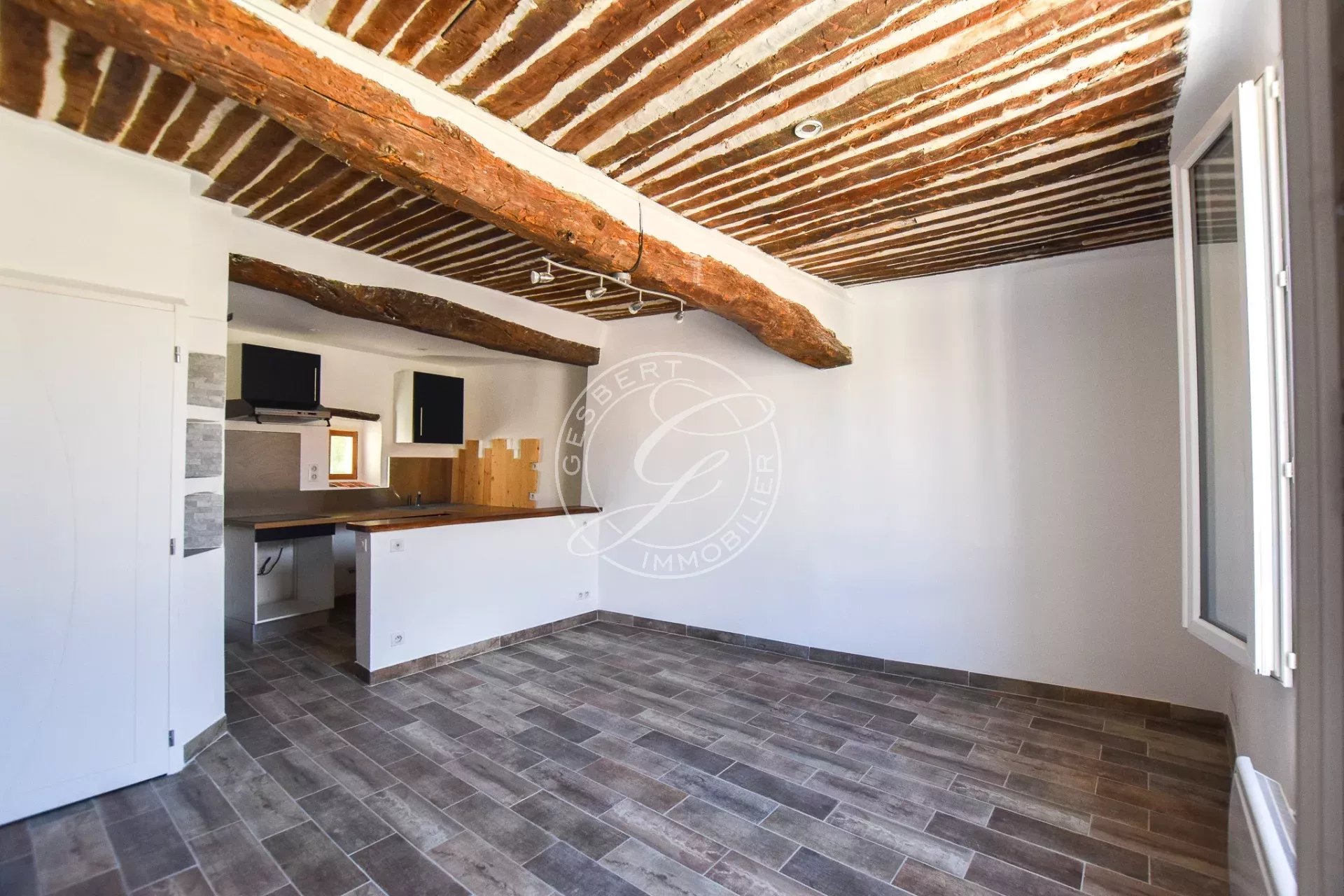 FLAYOSC Apartment for rent: In the heart of the village, fully renovated T2 apartment comprising bright living room with open kitchen, storeroom/laundry room/wc. Upstairs: bedroom with cupboards, shower room with toilet.