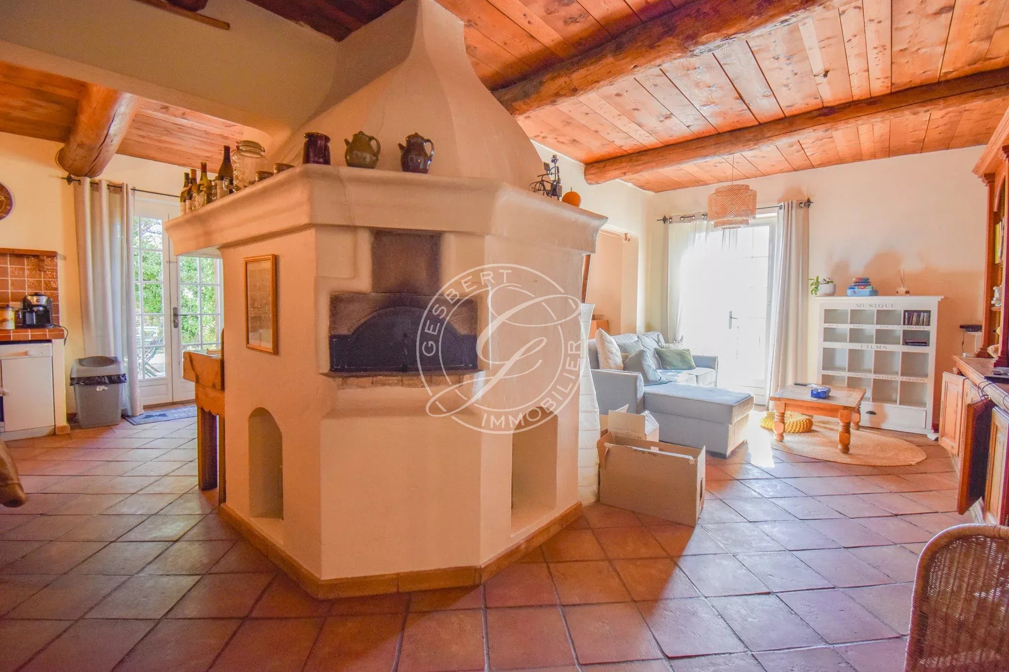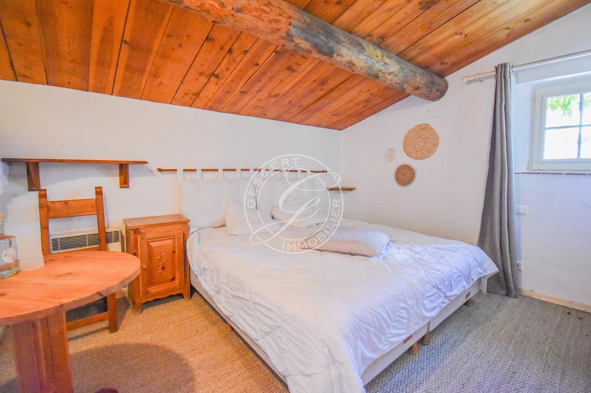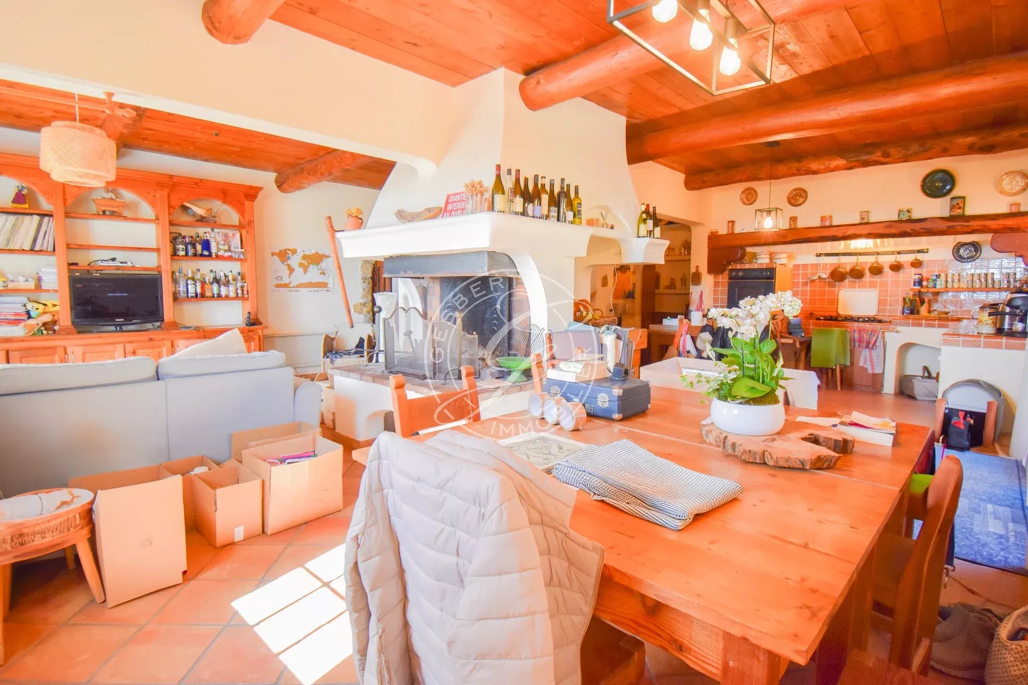 The private part offers a particularly pleasant living environment, with a large living room combining a lounge, dining room, and open kitchen. A central fireplace with a pizza oven enhances the friendly atmosphere of this space. The whole is completed by two bedrooms, one of which is communicating, a bathroom equipped with a bathtub, functional storage, separate toilets, and a utility room.