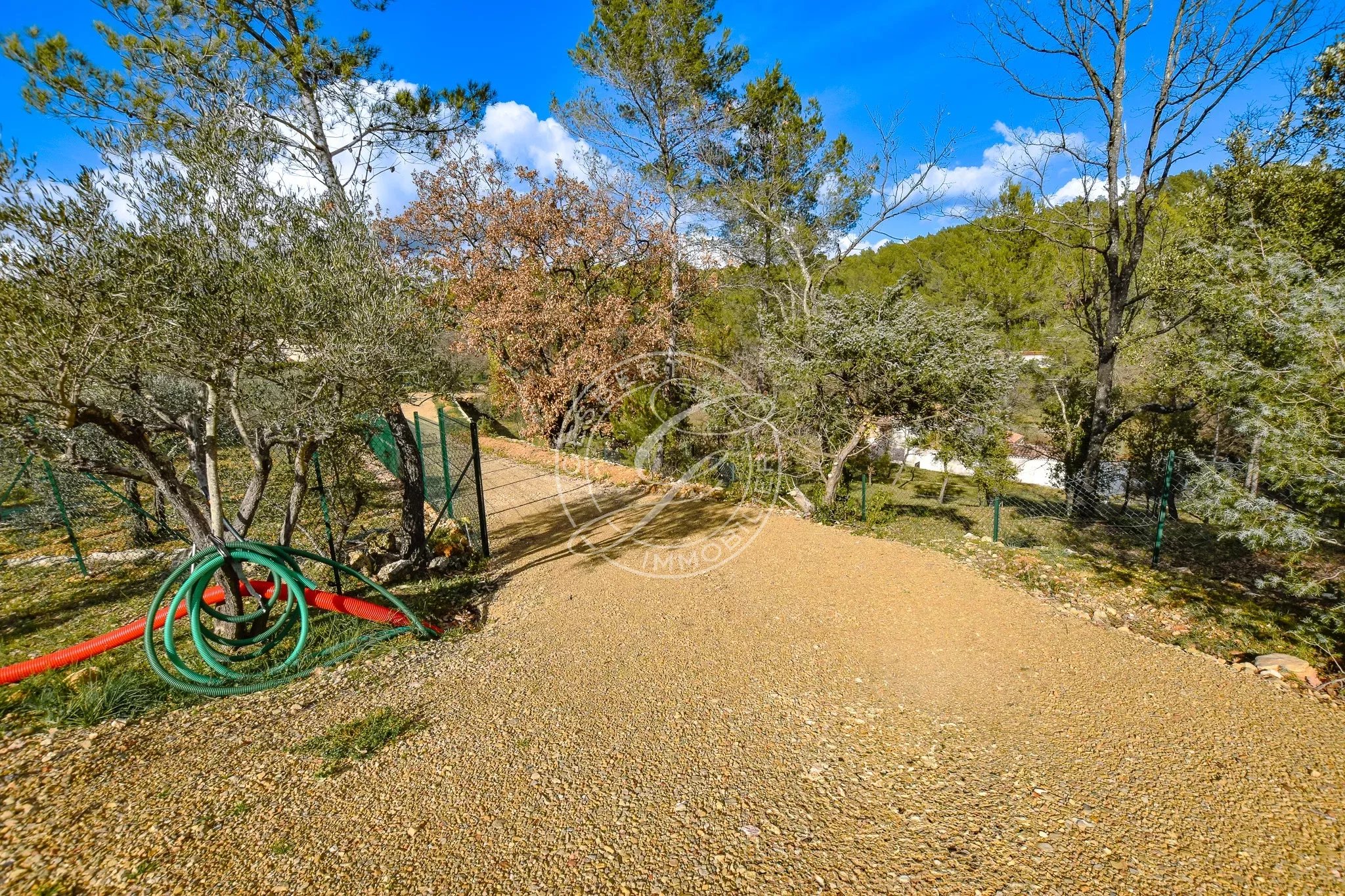 Very wide and easy to access thanks to a private road already laid out, it also offers a fire department turning area marked out on the plot. The plot is bounded and three-quarters fenced; all that remains is to install the entrance gate.
