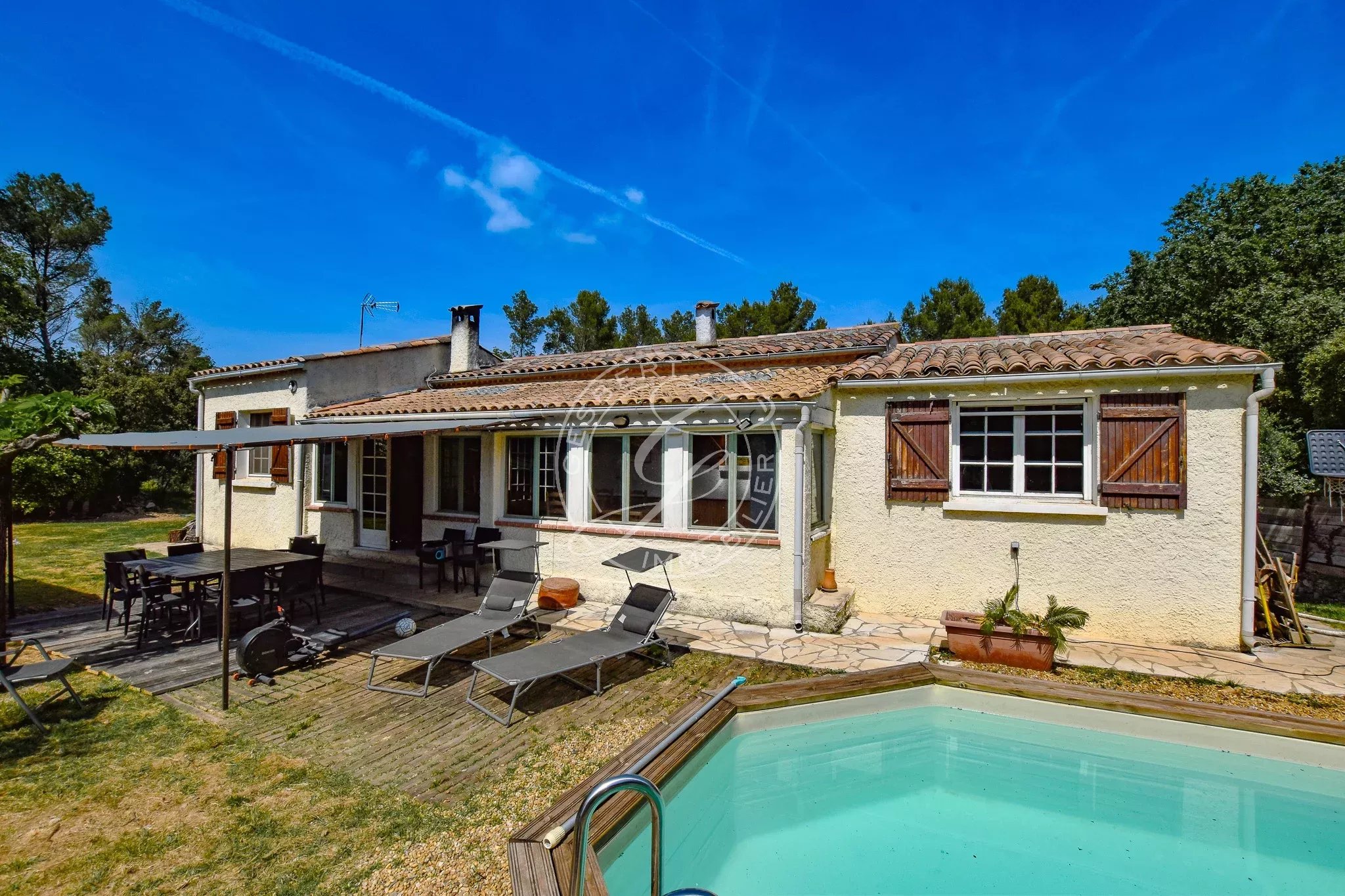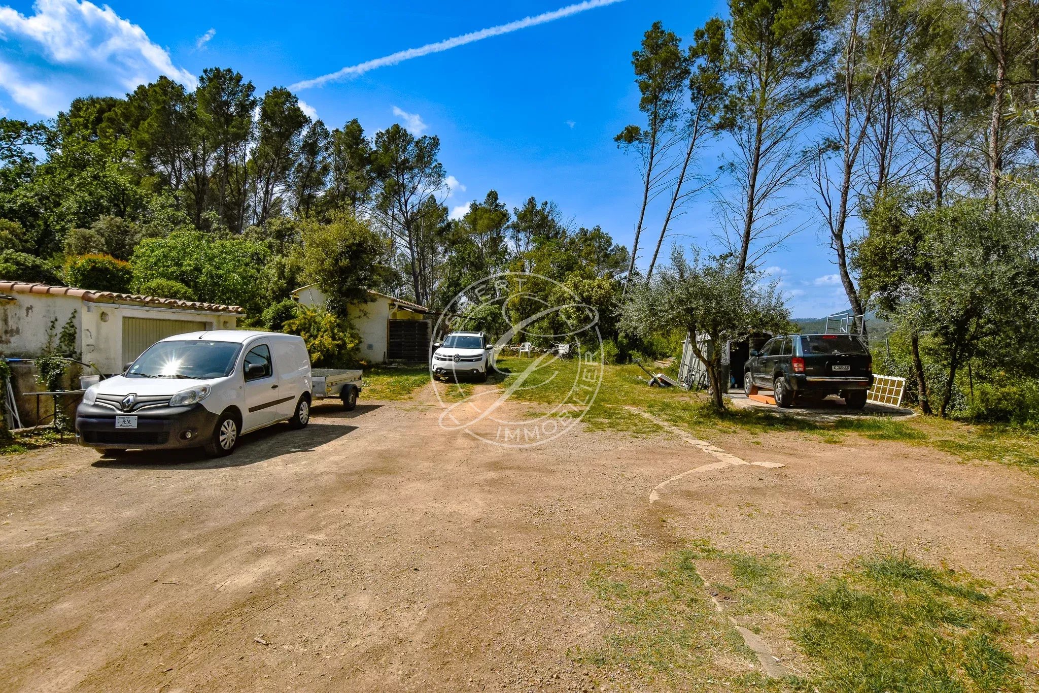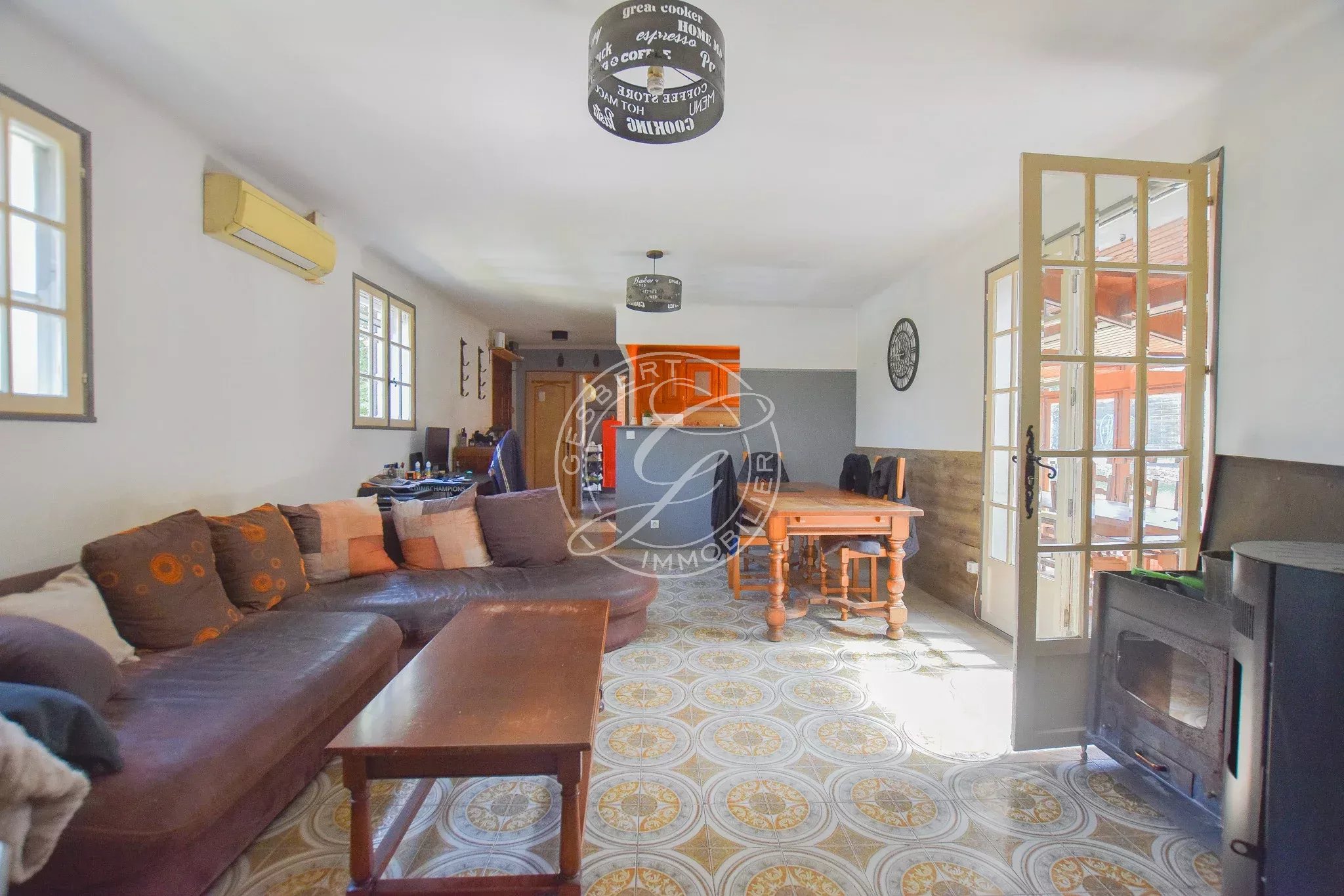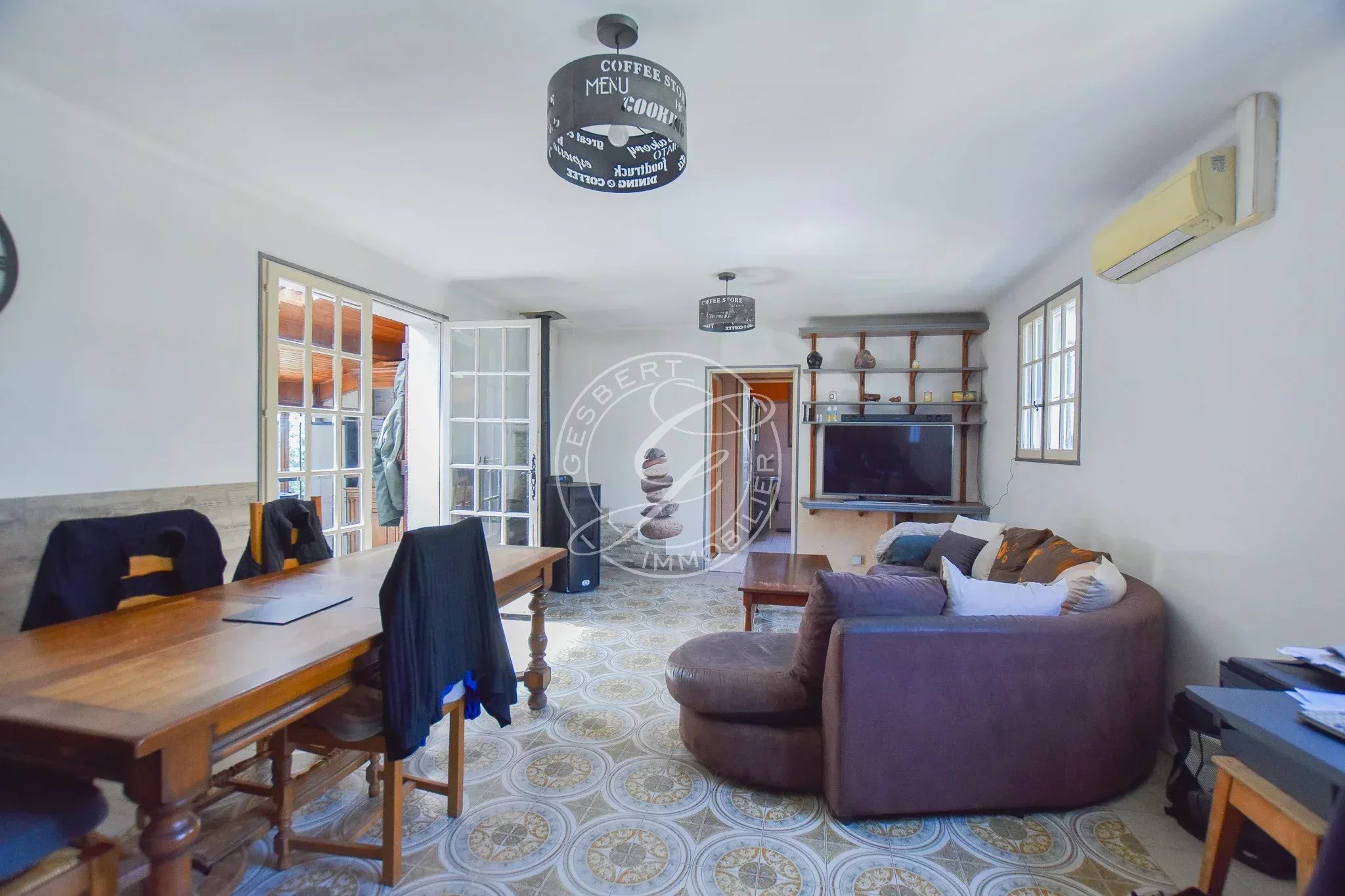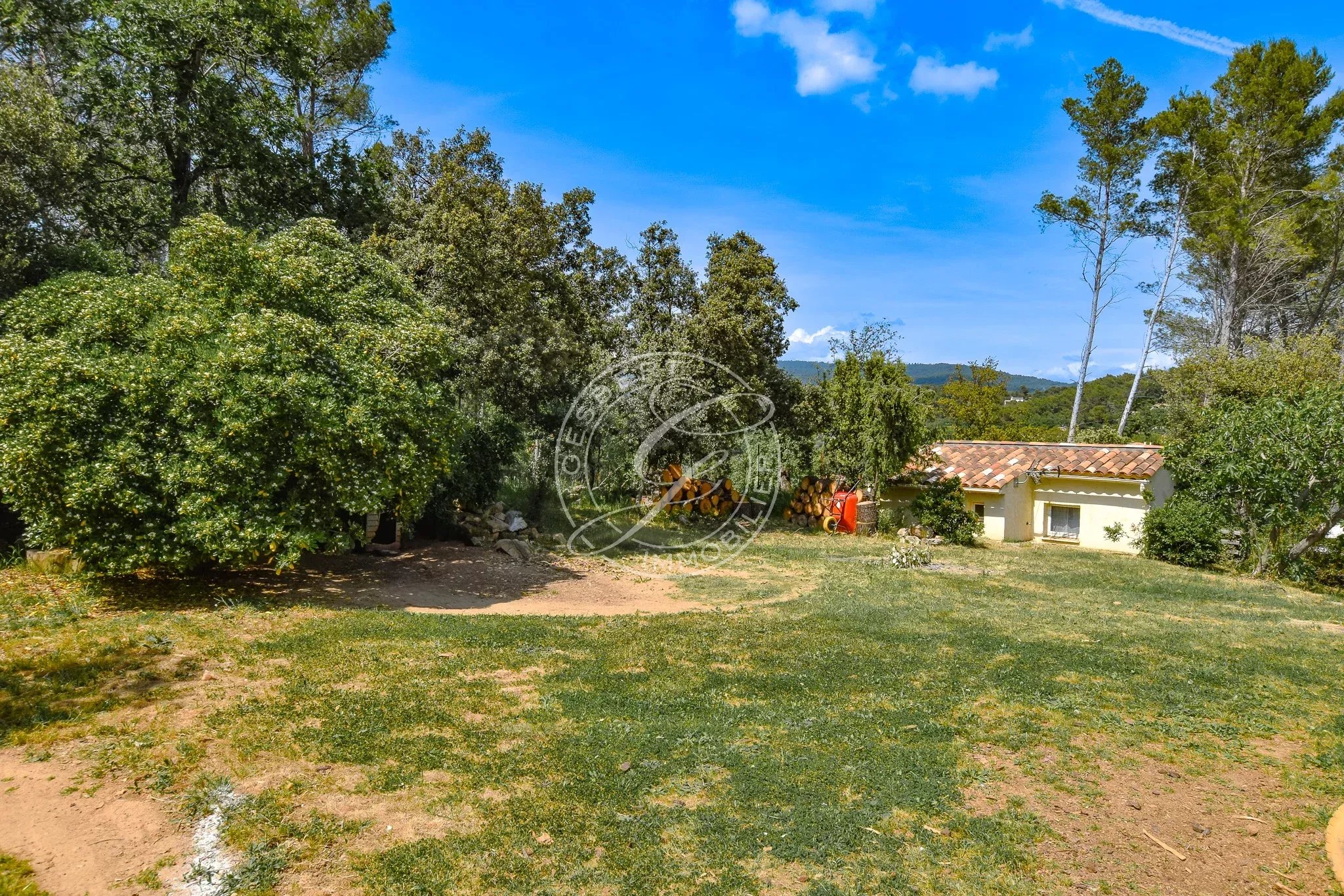 FOR SALE FLAYOSC - 1970s villa near the village and shops, featuring an open kitchen to the living room, large veranda, two spacious bedrooms, bathroom, and separate toilets.