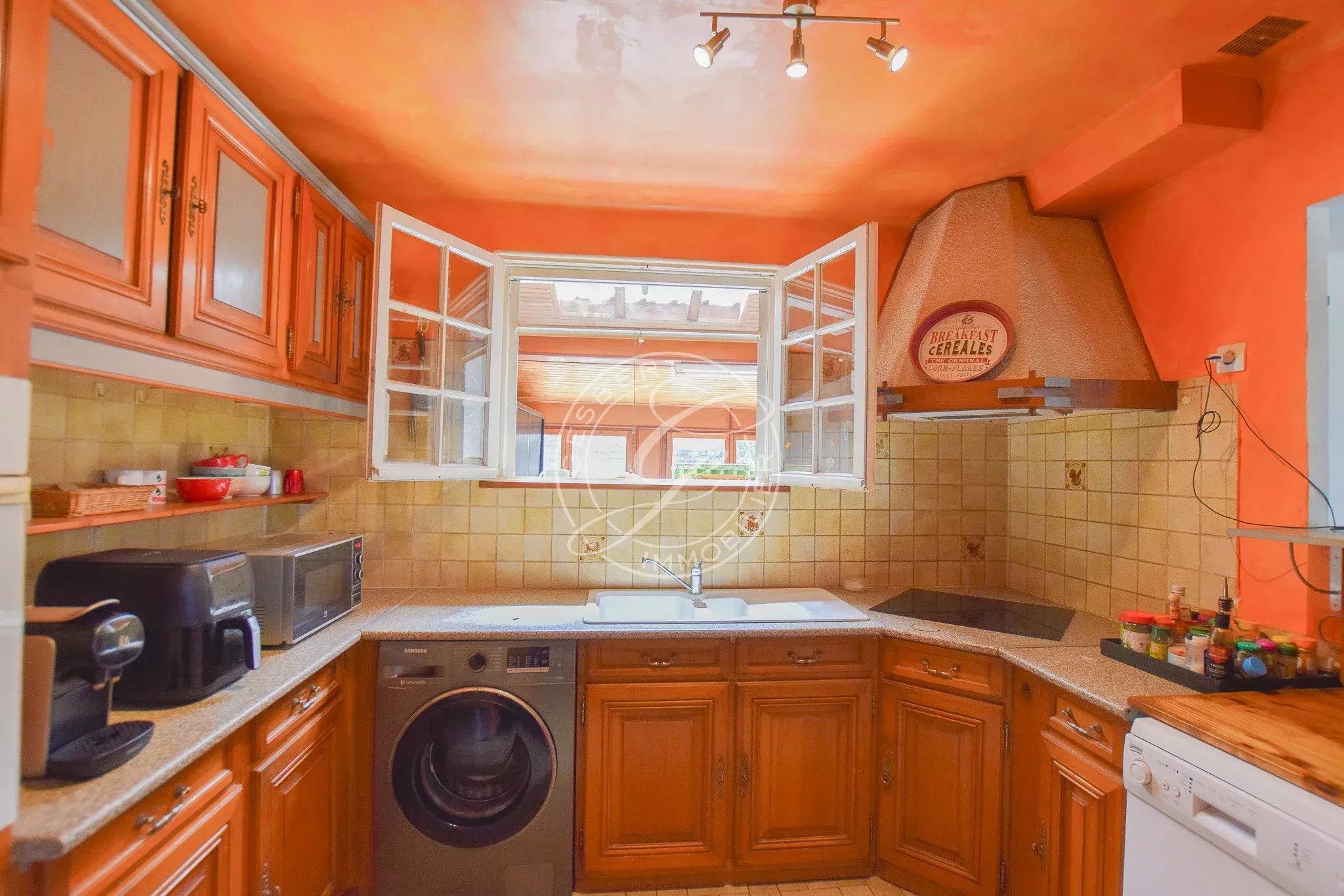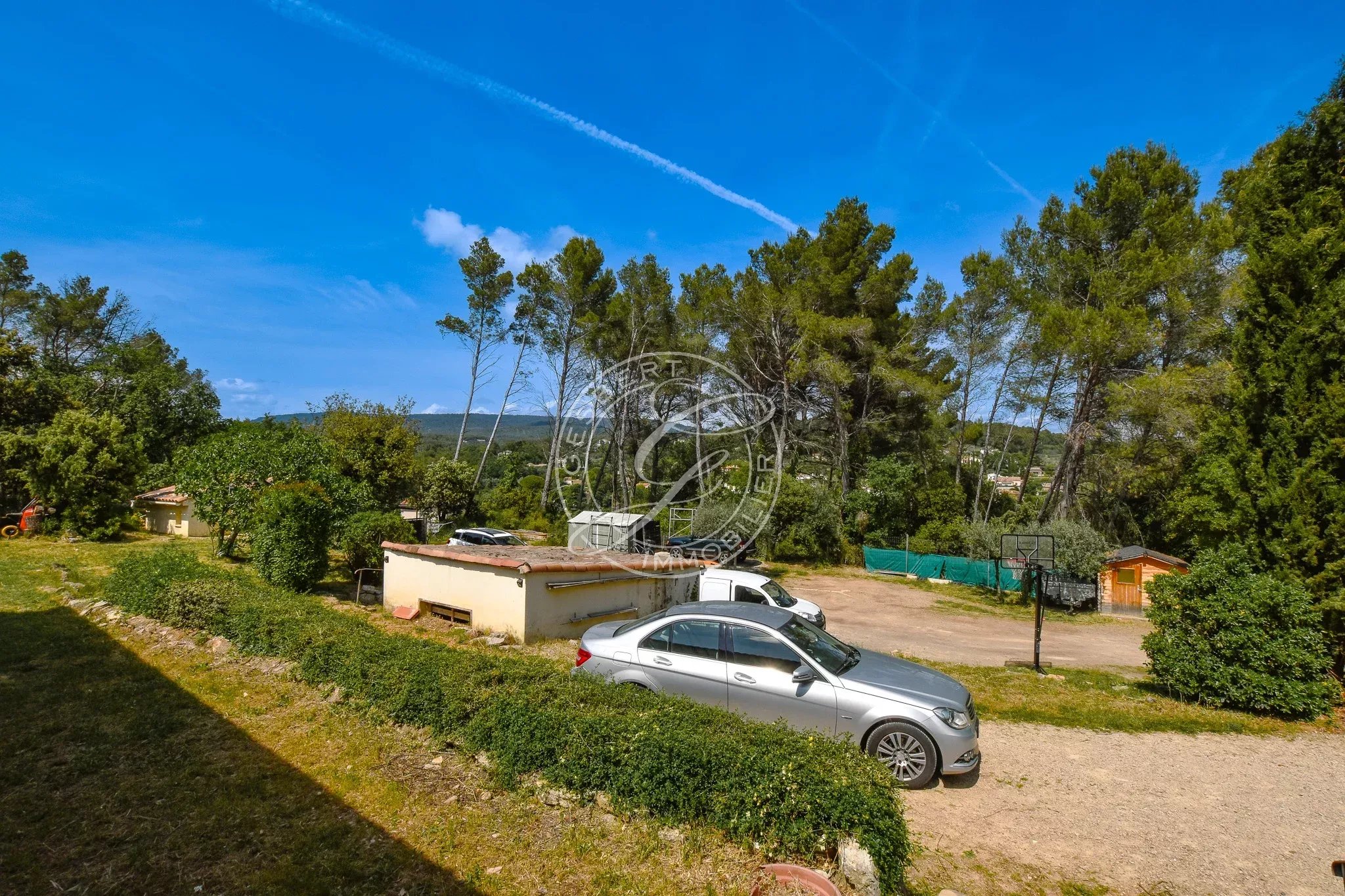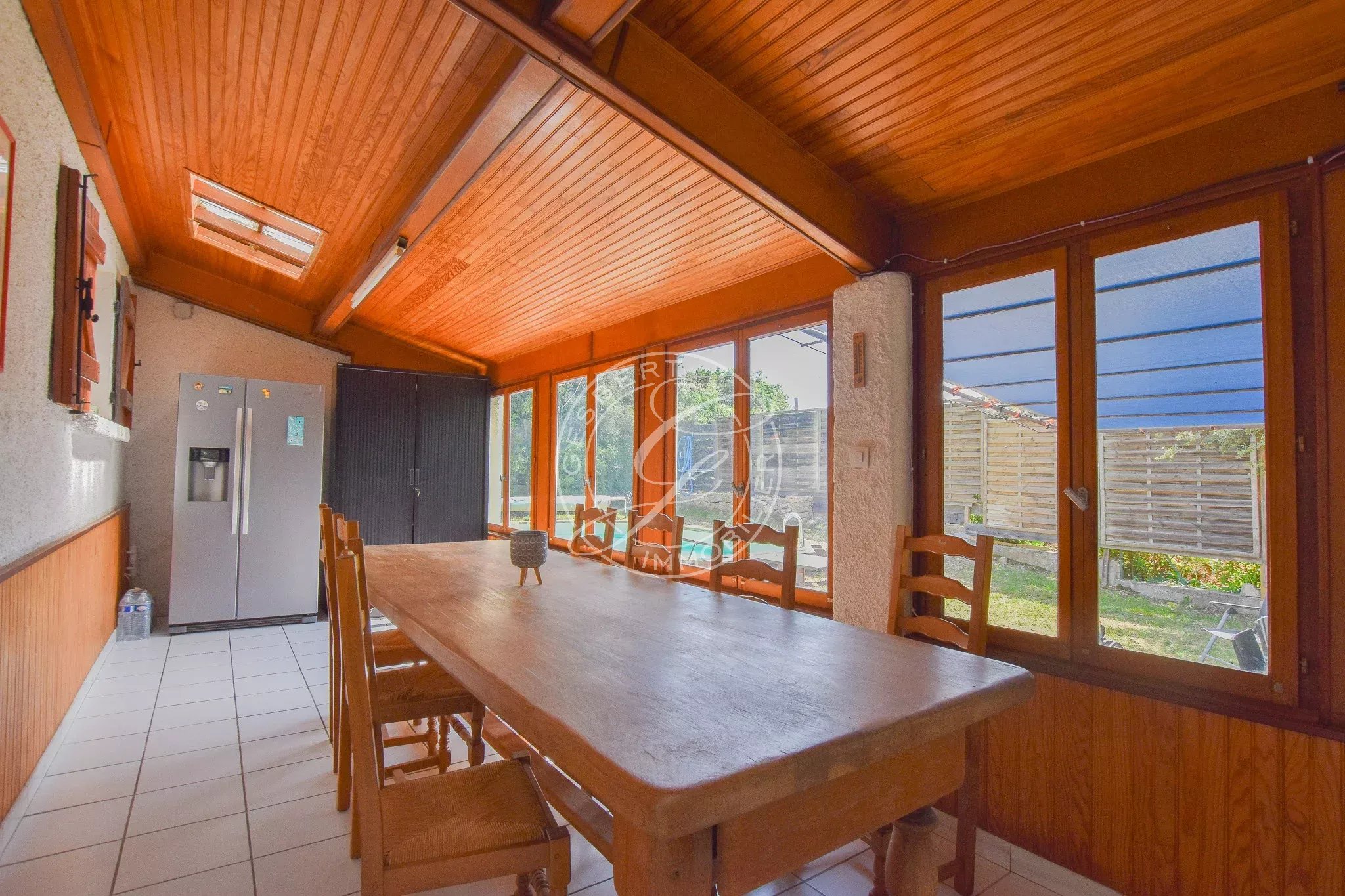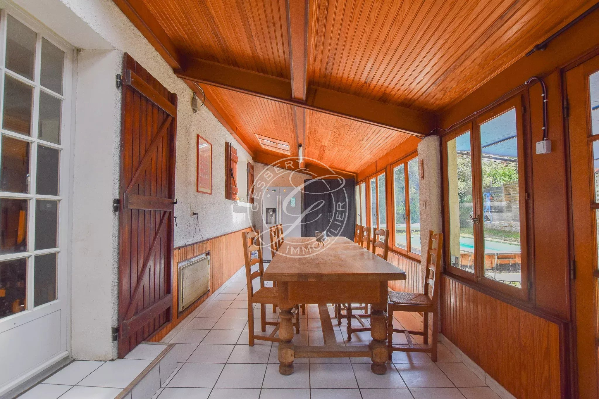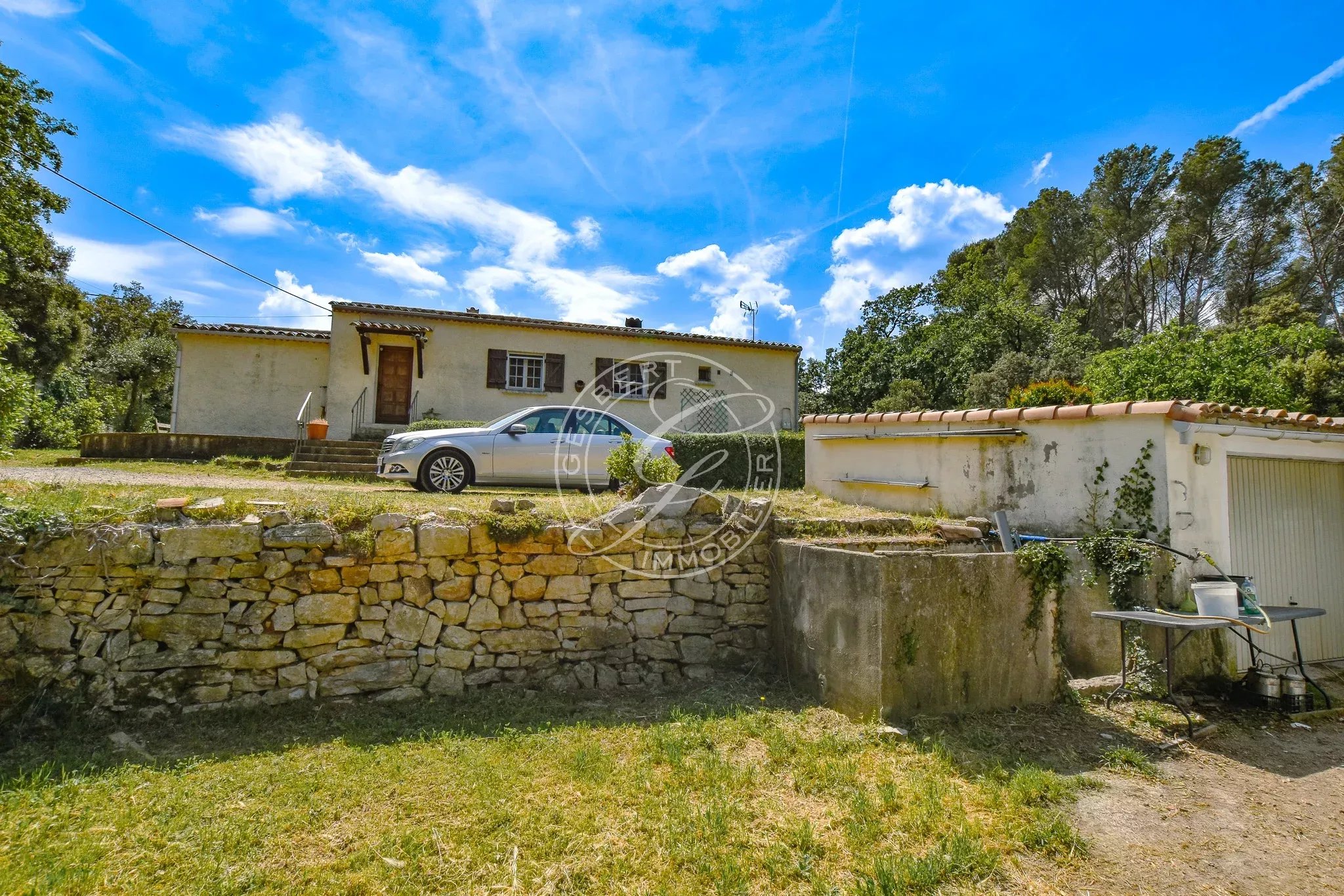 FOR SALE FLAYOSC - 1970s villa near the village and shops, featuring an open kitchen to the living room, large veranda, two spacious bedrooms, bathroom, and separate toilets.