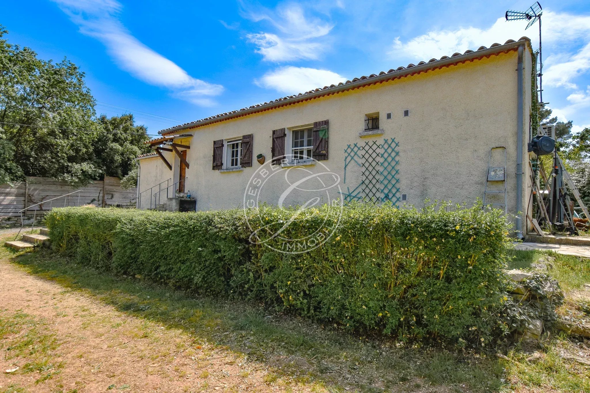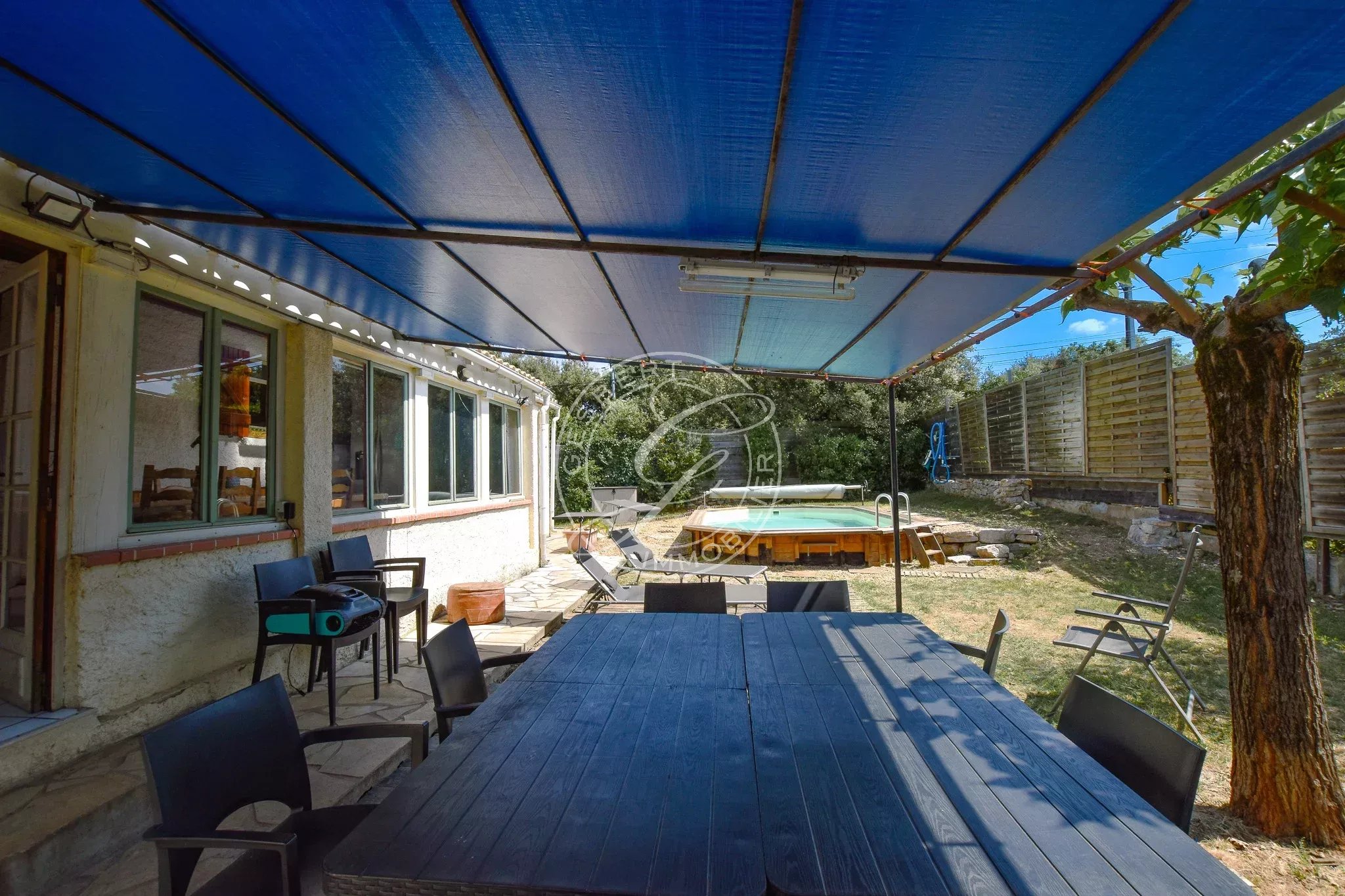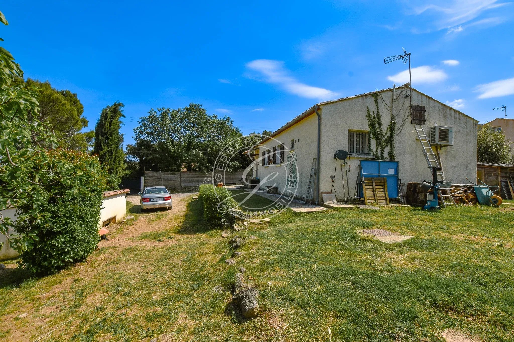 Old shed transformed into an independent studio, garage, above-ground pool.